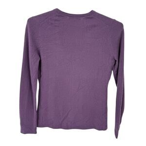 Gorgeous 100% cashmere sweater no dark plum purple. Size medium in excellent condition. Laid flat it measures approximately 18 inches armpit to armpit and the length from the top of the shoulder down the back 24 inches.