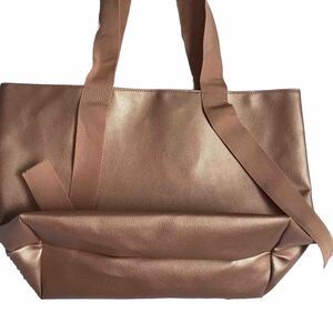 Saks Fifth Avenue Women’s PVC Bronze Copper Rose Pebbled Shopping Tote Bag EEUC