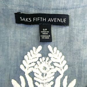 Saks Fifth Avenue Women's S/P Blue 100% Linen Embroidered V-neck Tunic Top