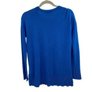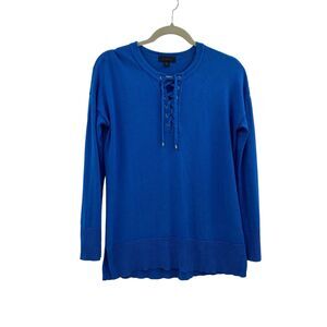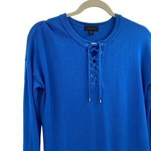 Saks Fifth Avenue Womens Small Blue Silk Cashmere Tunic Sweater Tie Up V‑Neck