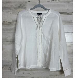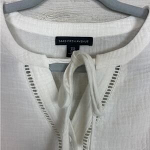 Saks Fifth Avenue Womens medium White Tie-Up Neckline Top long sleeve boho light
