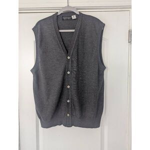 Saks Fifth Avenue Wool Vest men's size Large gray grandpa virgin lightweight