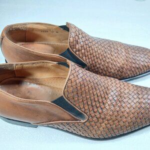 Saks Fifth Avenue Woven Leather Slip-On Loafers Mens 10 Made in Italy Good Cond