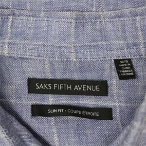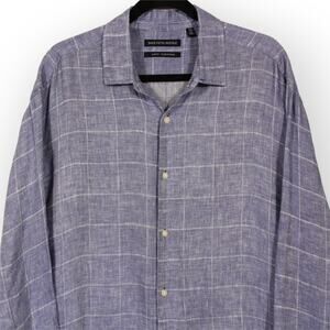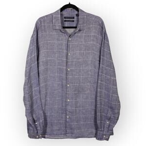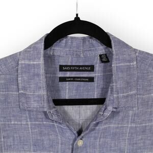 Saks Fifth Avenue XL Slim Fit 100% Linen Button-Down Shirt Light Blue Soft