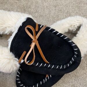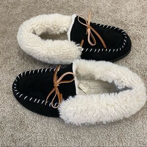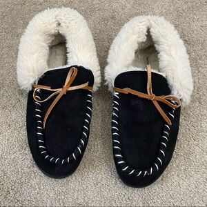 Lush faux-fur lined slippers with contrasting whipstitch detailing. Synthetic upper Faux fur lining Synthetic sole Fur type: Faux Imported