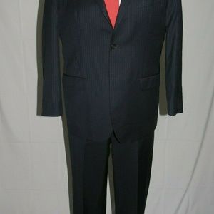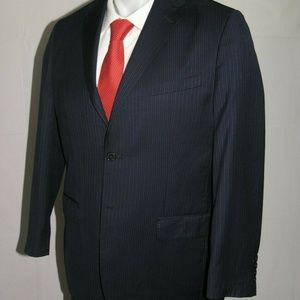 Saks Fifth Avenue Zegna Cloth Silk Blend Navy Striped Two Button Suit 40R