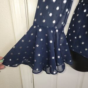 Saks Fifth Avenue navy blue & silver wrap top size XS