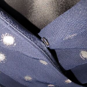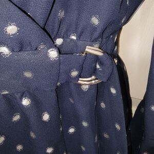 Excellent like new condition. Women's Saks Fifth Avenue navy blue & silver wrap top size XS.