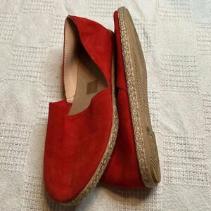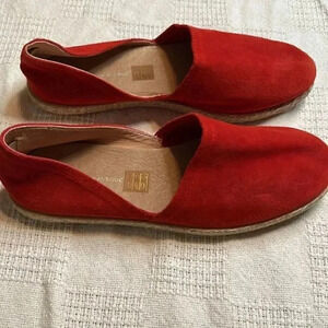 In excellent preowned red leather flats with espadrille and rubber sole. Size 38. CA6