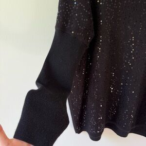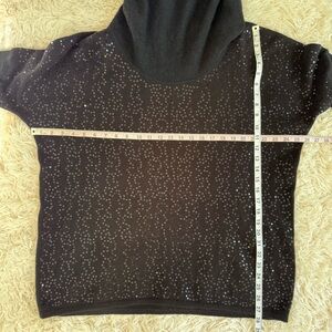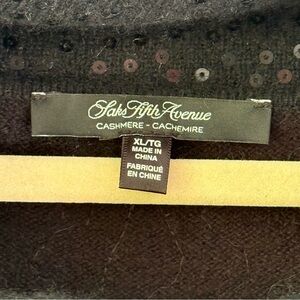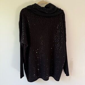 Saks Fifth Avenue sequined cowl neck cashmere sweater black SZ XL long sleeve