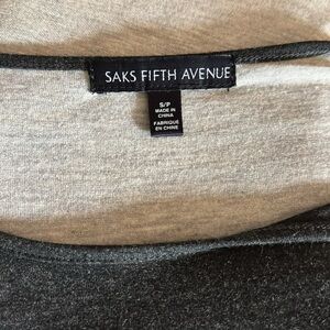 Saks Fifth Avenue shades of heather gray colorblock diagonal hem stretch top. Pullover. Crewneck. Lightweight. Viscose/spandex blend. Small. Armpit to armpit approximately 19 inches. Shoulder to hem approximately 30 1/2 inches at longest; 26 1/2 inches at shortest. Nonsmoking home.