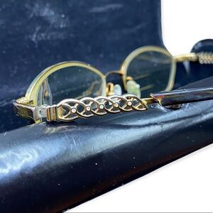 Saks Fifth Avenue 135 RV9 gold tone glasses side detail rhinestones