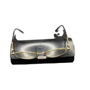 Saks Fifth Avenue 135 RV9 gold tone glasses side detail rhinestones & case