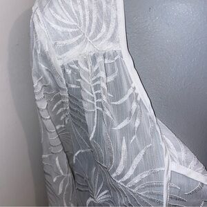 Saks Fifth AvenueTunic Blouse long sleeve sheer white floral embroidered medium