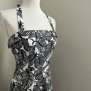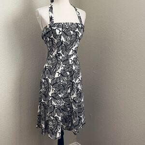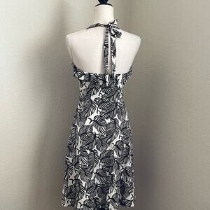 Saks Fifth Avenue Ivory and Brown Leaf Halter A Line Dress 4