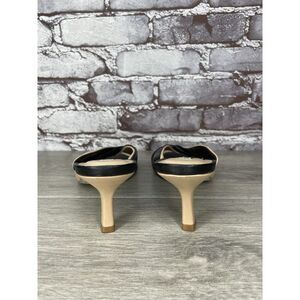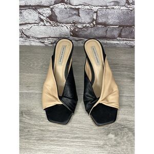 Saks Fifth Avenue Tan Black Leather Bow Mule Heels Shoes Women’s Sz 7B US/38EU