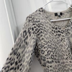 Saks Fith Avenue Cashmere Animal Print V Neck Sweater S Cozycore Fall Office