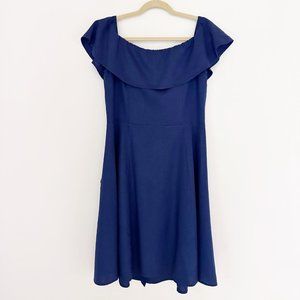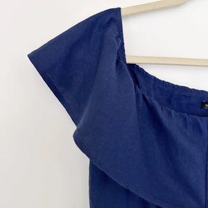 Saks Off the Shoulder Linen Dress Navy Button Down | 14