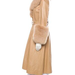 Saks Potts NEW Tan Leather & Fur Trench Coat: XS