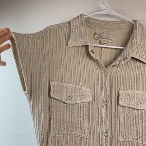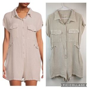 Saks: Vintage Havana textured romper snap front adjustable waist beachy boho EUC