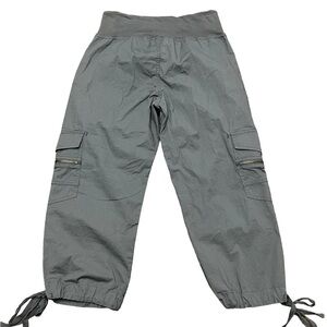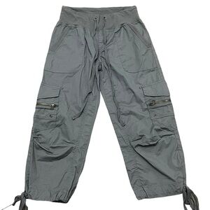 Saks Women’s Cropped Cargo Jogger Pants Gray Drawstring Utility Y2K Streetwear