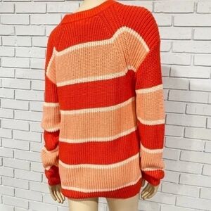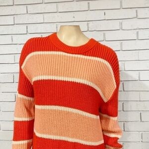 Saks Wythe NY Wide Striped Orange Coral Crew Neck Chunky Cozy Sweater Sz Medium