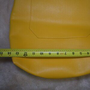 Brighten up your look with this Saks Yellow Tote Shoulder Bag, the perfect everyday carryall. Made from durable thick faux leather, this large tote is both stylish and functional with plenty of room for all your essentials. Featuring a large exterior pocket, sturdy straps, and a bold yellow hue, this bag is a statement piece that adds a pop of color to any outfit. In excellent condition.