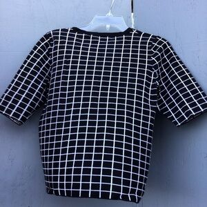 Saks fifth avenue checkered short stretchy, geometric, trellis women knit top