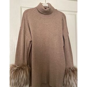 Saks fifth avenue caramel brown color tunic with fur sleeves - NWOT