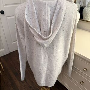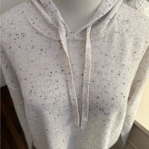 Gray sweater with black speckled pattern made of cashmere. This has a drawstring hood. It is an excellent condition and never worn.