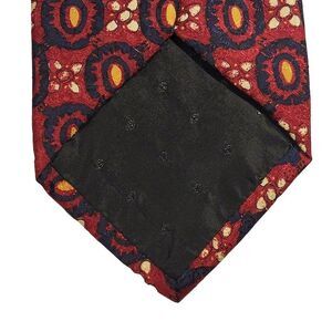 Saks Fifth Avenue Exclusive 100% Silk Neck Tie Floral Red 57X4 Geometric. Colors: Red, Blue, and Yellow. Excellent pre-owned condition with no flaws.