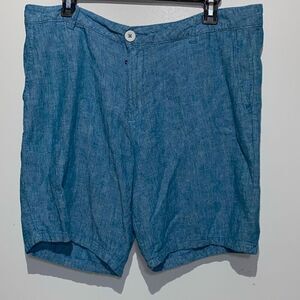 Saks Fifth Avenue Men's Blue Linen Blend Flat Front Casual Shorts Size 34