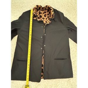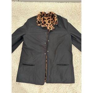 Reposhed Saks Fifth Avenue Women's Reversible, animal print and black Jacket Trench Coat, Size Large. Reposhed. There wasn’t a size tag so its a little tight on me. I wear an XL. Please see the measurements. Its an elegant, classy jacket and in great condition.