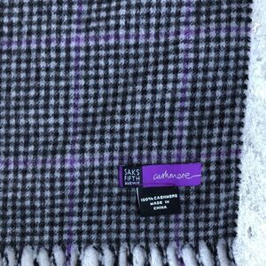 Beautiful cashmere scarf. In great condition. Colors are purple light gray and a light black