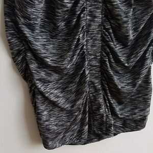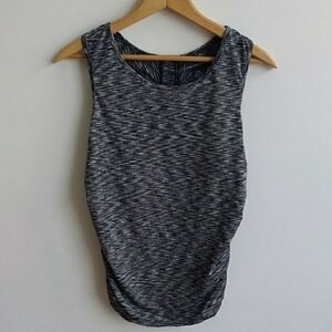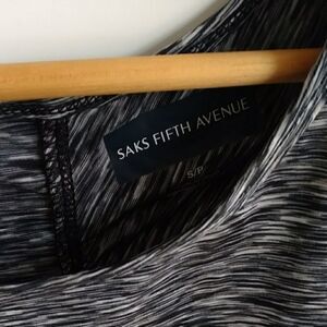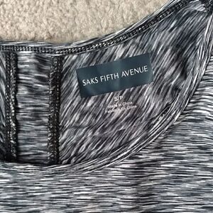 Saks Fifth Avenue black/white workout tank. Size Small Petite. Thank has racerback design in the back and sides have a ruched/gathered finish. 90% polyester and 10% spandex. This is a great tank in beautiful shape!
