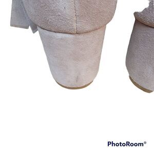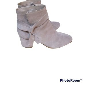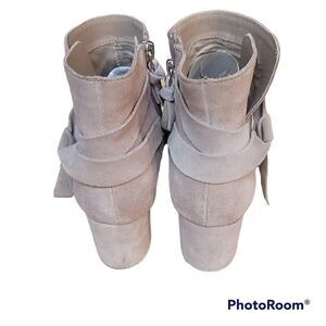 Suede heeled booties with side zip closure. Has padded footbed for comfort. These are in great pre-owned condition. There is a very small mark on the back of one heel. Please see photos for more details. Size 9.