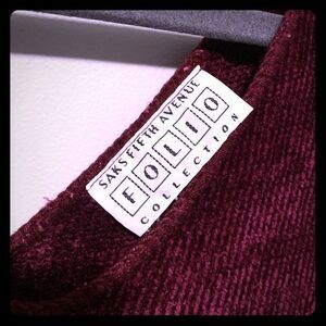Soft, ribbed, velvet sweater. V-neck, long sleeve. Dark raspberry color. Great look paired with leather skinnies.