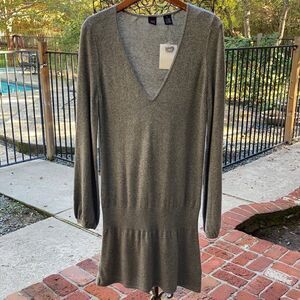 Saks Fifth Long Sleeve Gray Drop Waist Dress Size Large NWT