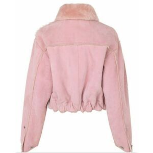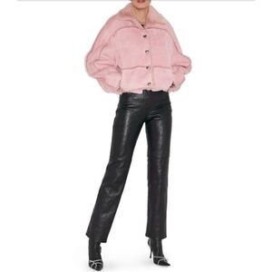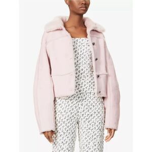 Saks Potts Kahlo Genuine Shearling Lambskin Cropped Baby Pink Coat Sz 2/US M
