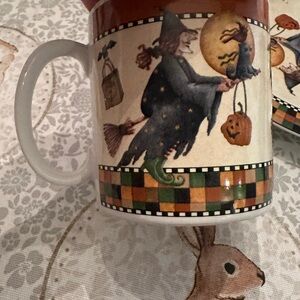 Debbie Mum , Sakura Genuine Stoneware 1998 Halloween themed salad plate (8 1/4” x 8 1/4”) and mug 3 3/4” tall , both n very good condition. All sales final