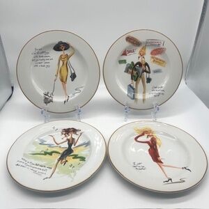 Sakura Glamour Girls Salad/Dessert Plates Set of 4 Whimsey Fashionista Sayings