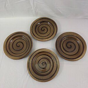 Set of 4 – Brown and Gold Swirl Pattern Stoneware Plates