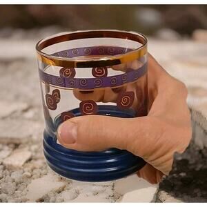 Sakura Sango Sue Zipkin Tumbler Drink Glass Blue Gold Cocktail Party Art Deco