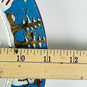 Celebrate winter magic with these delightful snowman plates from Debbie Mumm for Sakura, 1998. Featuring a joyful design of snowmen, starry blue skies, and wintry trees, these 10.5-inch stoneware plates bring warmth and charm to your holiday table. Dishwasher and microwave safe, they combine convenience with holiday cheer. Whether you’re hosting a festive feast or adding a touch of seasonal whimsy to everyday meals, these durable and artful plates are both collectible and practical.