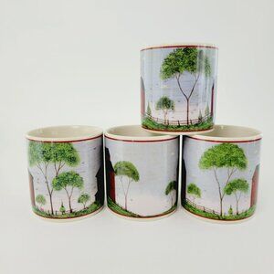 Sakura Warren Kimble Barns Coffee Mug Set of 4 Folk Art Countryside Farm c.1998