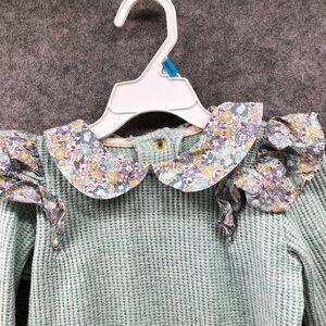 Sal & Pimenta Mint Jumper Girls 4T Collared Sweater Waffle Knit Ruffle
