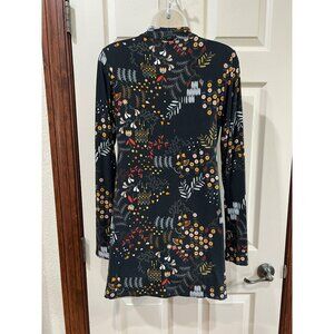 Salaam XS Black Floral Print Long Sleeve V-Neck Tunic Top