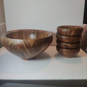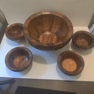 Salad Bowl Set of 5 pieces. Hardwood, Handmade of Substantial Size & Quality.