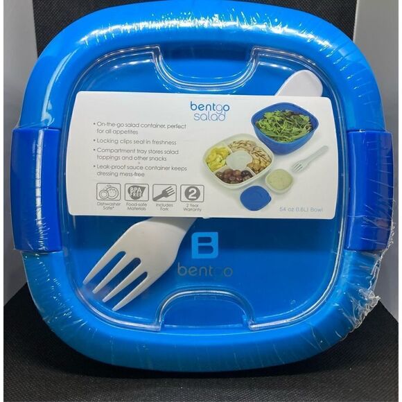 This is the leak proof on the go salad container. It has locking clips to seal the freshness. It has compartment trays that store salad toppings and other snacks.