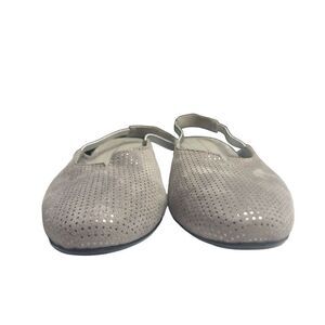 Salamander Grey and Silver suede sling back mules in size 6.5